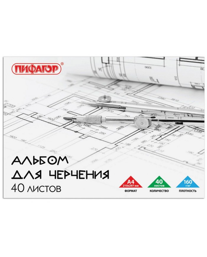 Альбом для черчения А4 40 л., склейка, 160 г-м2, ПИФАГОР,