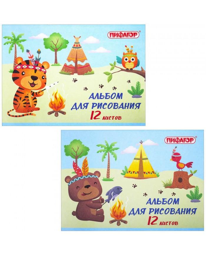 Альбом для рисования А4 12 л., скоба, обложка офсет, ПИФАГОР, 203х288 мм, "Пикник" (2 вида),