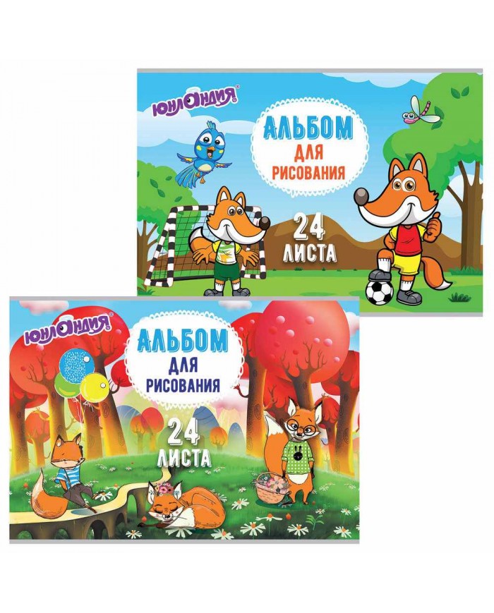 Альбом для рисования, А4, 24 листа, скоба, обложка картон, ЮНЛАНДИЯ, 202х285 мм, "Лисята" (2 вида),