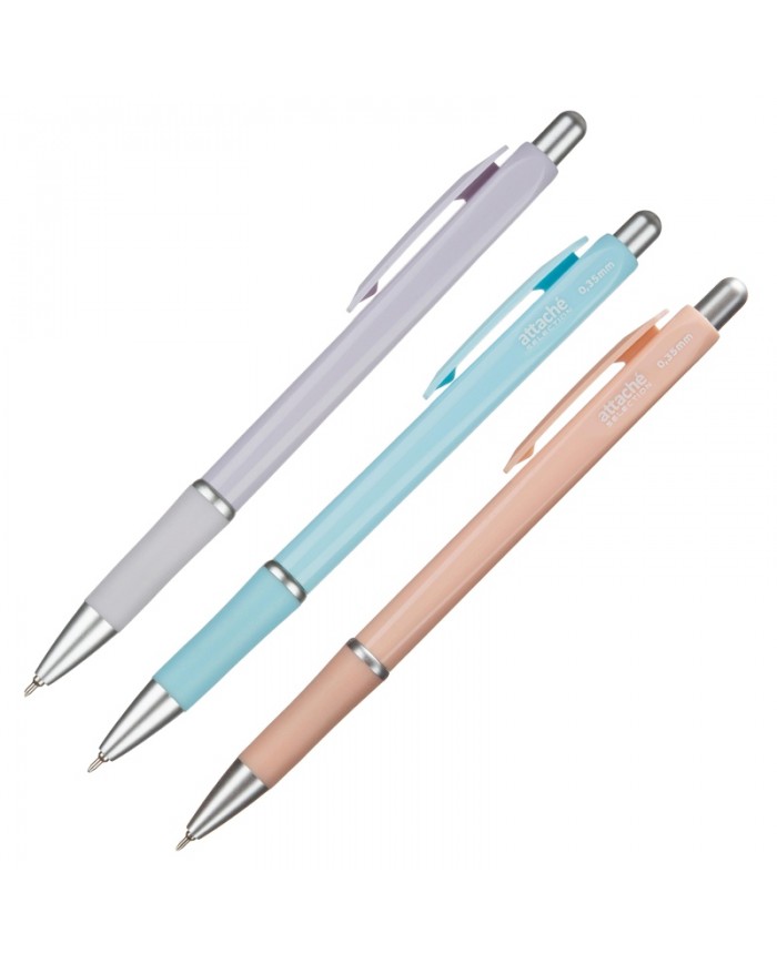 Ручка шариковая автоматическая Attache Selection Flora изготовлена из пластика пастельных оттенков с контрастными деталями серебристого цвета. Сменный стержень длиной 107 мм заправлен высококачественными масляными чернилами синего цвета. Резиновая манжетка в цвет корпуса способствует надежному захвату пальцев и препятствует выскальзыванию. Диаметр пишущего узла 0.5 мм создает линию письма, равную 0.35 мм. Форма наконечника: игольчатая. Внимание. Товар поставляется в нескольких цветовых решениях (без возможности выбора).
