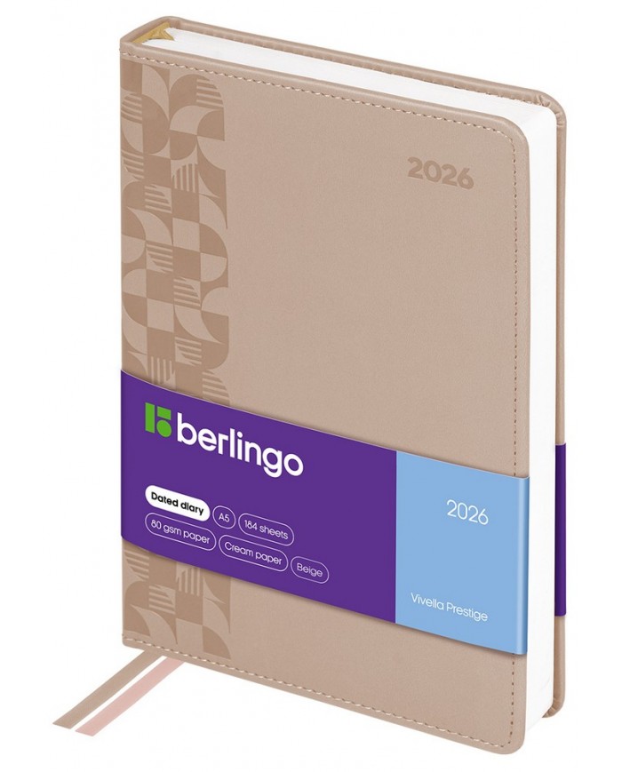 Датированный ежедневник на 2026 год Berlingo "Vivella Prestige" формата А5 идеален для повседневного использования. Размер — 150*215 мм. Модель представлена с твёрдой матовой обложкой из бежевой высококачественной экокожи. Имиджевое тиснение на обложке добавляет интересную деталь в классический дизайн.