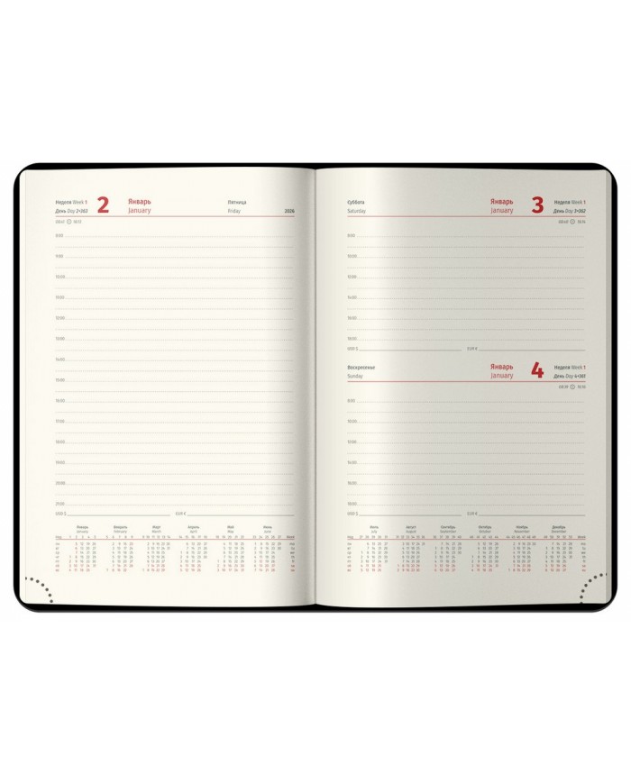 Перфорированные уголки страниц и две закладки-ляссе делают использование более комфортным. Приятное дополнение — три комплекта стикеров. Внутри размещены отрывные заметки, бланки извещения о ДТП и справочные материалы. Датированный ежедневник подходит под персонализацию. Изделие помещено в индивидуальную упаковку, что гарантирует его целостность и сохранность.