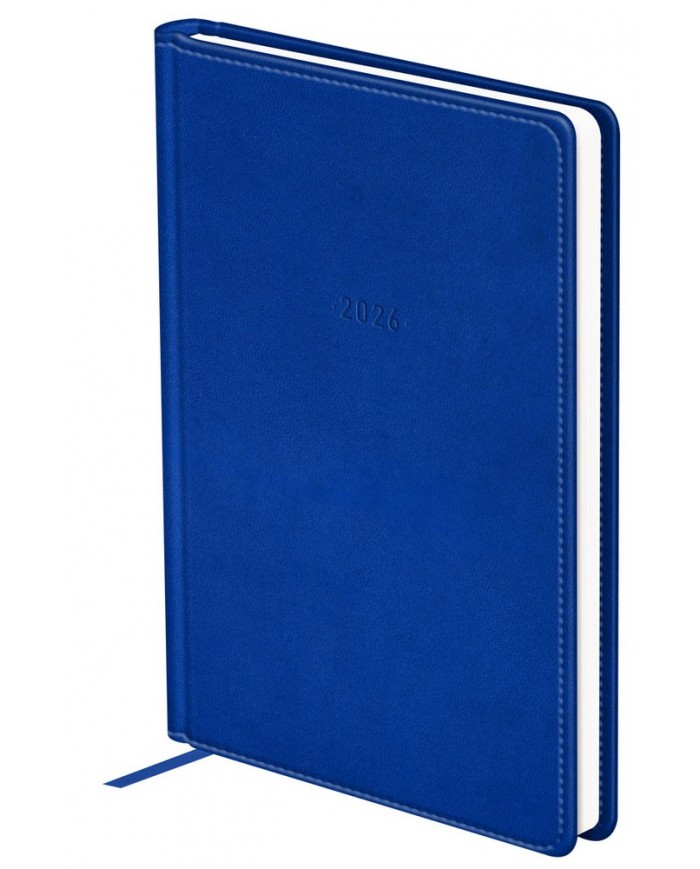 Элегантный датированный ежедневник на 2026 год BG формата А5 серии серии Winner в твёрдой обложке синего цвета, выполненной из высококачественной экокожи с гладкой матовой поверхностью и поролоновой прослойкой. Внутренний блок состоит из 176 листов белой офсетной бумаги плотностью 70 г/м2 с печатью в 2 краски. Датированный ежедневник представлен в размере 145*205 мм.