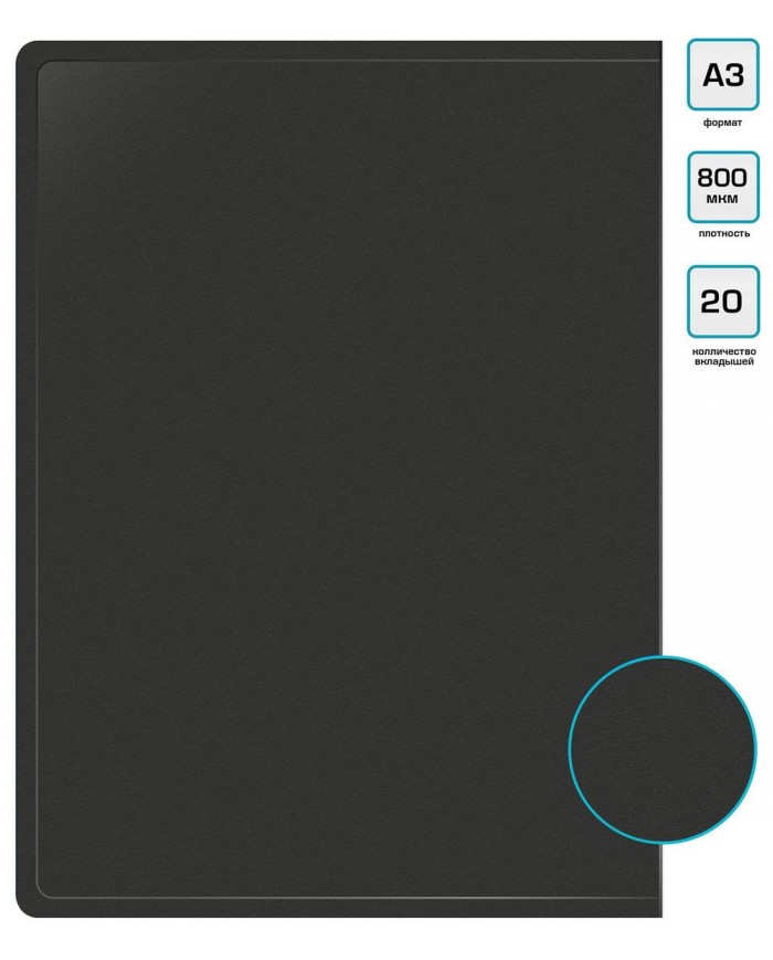 Папка с 20 прозр.вклад. Бюрократ -BPV20A3BLACK А3 пластик 0.8мм черный