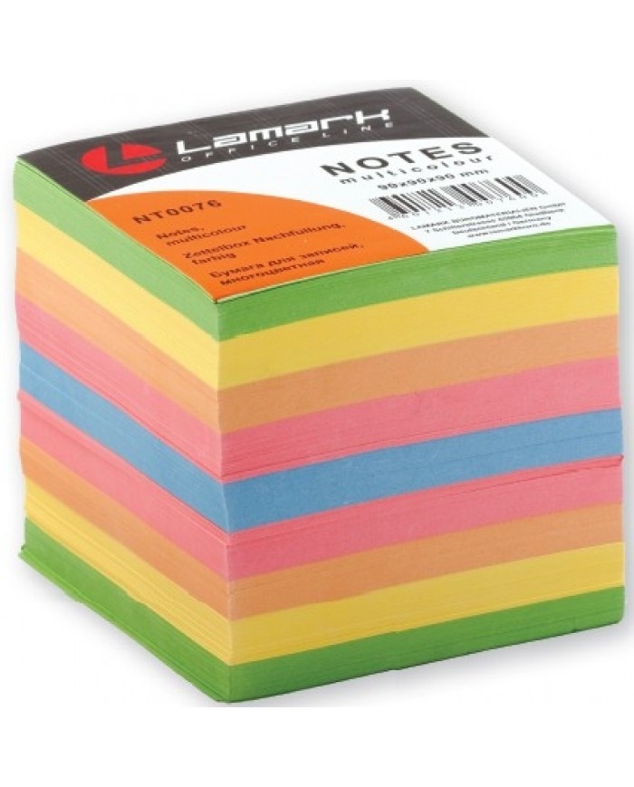 Бумага для записи Lamark цветная, непроклеенная. Размер листа 90х90 мм, 900 листов, плотность 80 г/м2, в термопленке.
