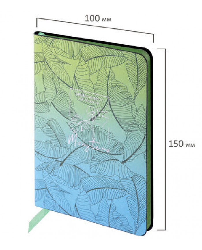 Блокнот МАЛЫЙ ФОРМАТ (100х150 мм) А6, BRAUBERG VISTA "Monstera", под кожу, гибкий, тиснение фольга,