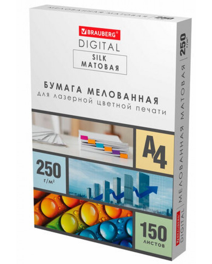 Оптимальные характеристики бумаги BRAUBERG DIGITAL SILK гарантируют отличный результат при двусторонней печати и копировании. Превосходная структура бумаги способствует ровному распределению тонера (краски) и обеспечивает превосходное качество готовой продукции. Область применения: каталоги, брошюры, плакаты, проспекты, листовки, журналы, годовые отчеты, обложки книг и журналов, фотоальбомы. В пачке 150 листов плотностью 250 г/м2 формата А4. Напоминаем, что при использовании бумаги повышенной плотности следует убедиться, что принтер рассчитан на выбранную вами плотность листа, а в настройках корректно указан тип и размер бумаги. Перед загрузкой в оргтехнику пролистывайте бумагу с 4 сторон.