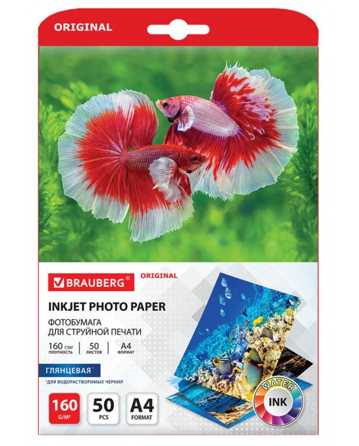Фотобумага глянцевая, А4, 160 г/м2, 50 листов, односторонняя, 50 листов, BRAUBERG ORIGINAL, 363984