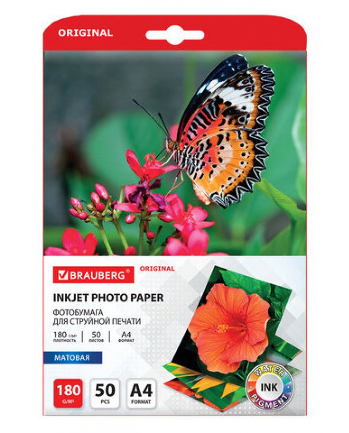 Фотобумага матовая, А4, 180 г/м2, односторонняя, 50 листов, BRAUBERG ORIGINAL,