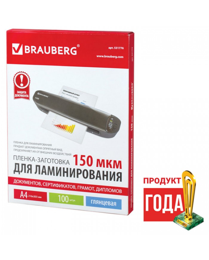 Пленка для ламинирования А4, КОМПЛЕКТ 100 шт., 150 мкм, BRAUBERG