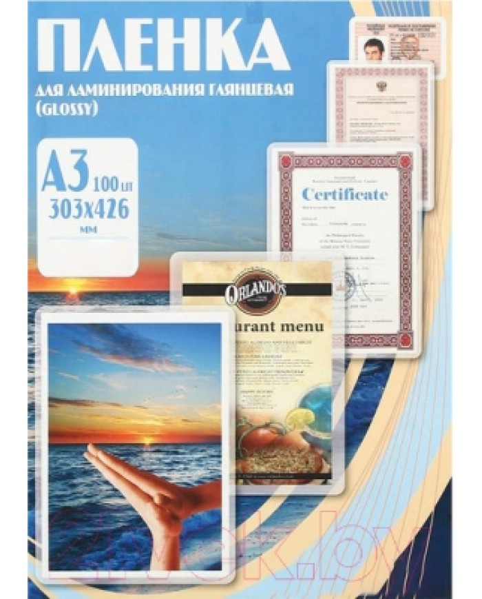 Представляет собой двойной пакет, спаянный с одной стороны (содержание полиэстера > 50%). Документ вкладывается между слоями пленки и в дальнейшем подвергается термообработке в ламинаторе. Суммарная толщина пленки-заготовки - 200 (100х2) мкм, что позволяет защитить документы и увеличить жесткость, сохраняя яркость изображения. Пленка для ламинирования BRAUBERG формата А3 (303х426 мм) имеет уникальный состав: полиэтилентерефталат (PET), этиленвинилацетат (EVA), полиэтилен (LDPE). Промежуточный сл