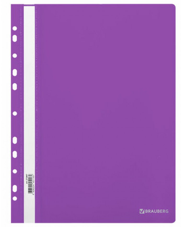Скоросшиватель пластиковый с перфорацией BRAUBERG EXTRA, А4, 140/180 мкм, фиолетовый,