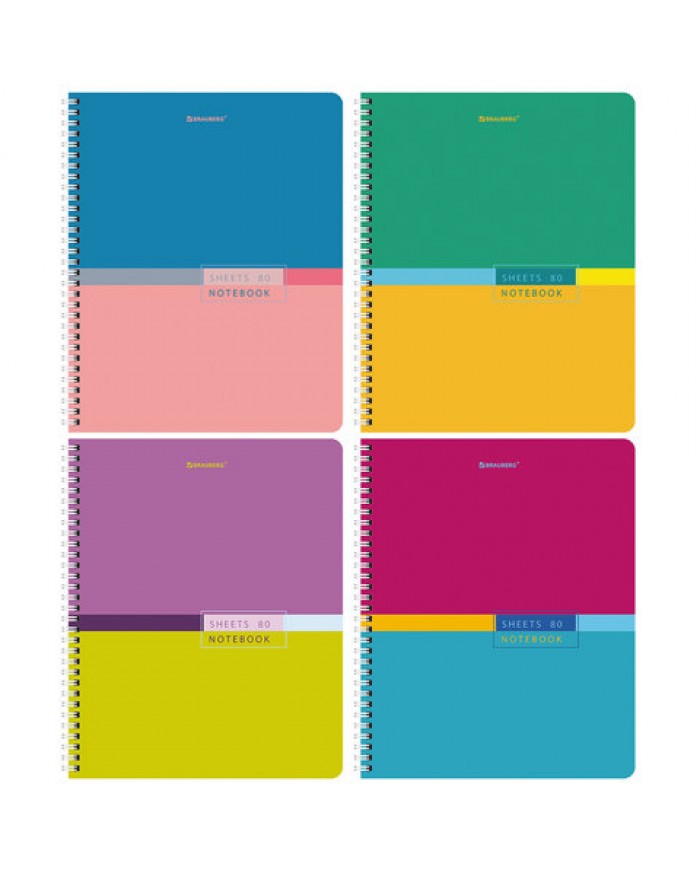 Тетрадь А5 80 л. BRAUBERG, гребень, клетка, обложка картон, "Color" (микс в спайке),