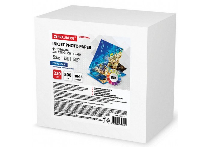 Имеет формат 10х15 см и плотность 230 г/м2, что исключает просвечивание изображения. Гладкая поверхность обеспечивает превосходное качество, а особый ..