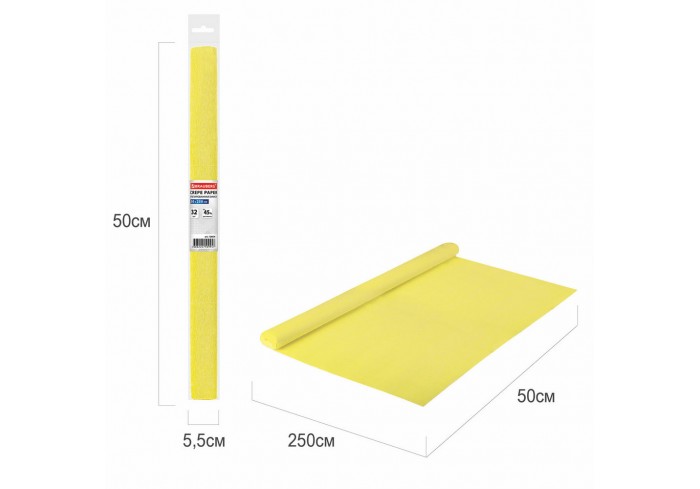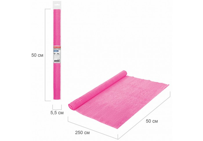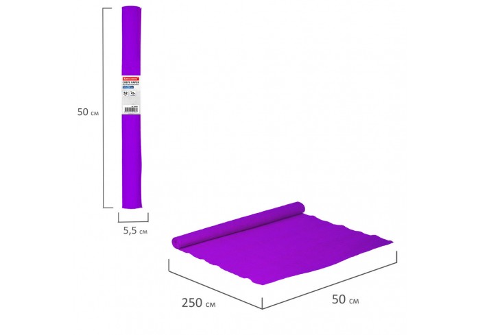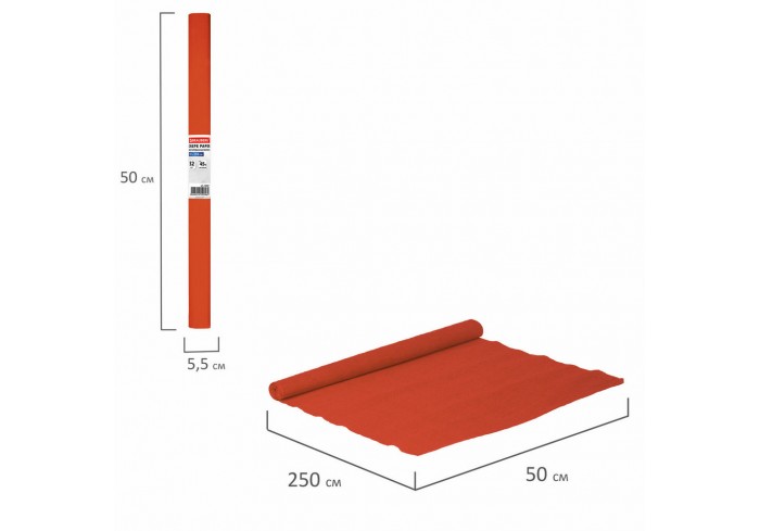 Гофрированная (креповая) бумага представляет собой бумажную продукцию с неровной, складчатой поверхностью. Размер бумаги - 50х250 см, плотность – 32 г..