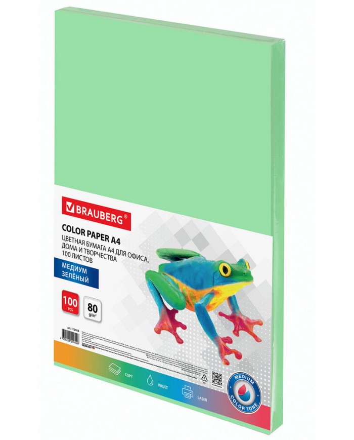 Упакована в пачки по 100 листов формата А4. В упаковке бумага умеренно-насыщенного тона зеленого цвета. Листы бумаги плотностью 80 г/м2 подходят для офисной техники. Поставляется в упаковке «полибэг» (Polybag), которая представляет собой прочный прозрачный полиэтиленовый конверт надежно защищающий бумагу при транспортировке. С одной стороны полибэг имеет заклеивающийся клапан, что предоставляет возможность многократно открывать и закрывать упаковку. Цветопередача монитора может искажать реальный цвет бумаги.