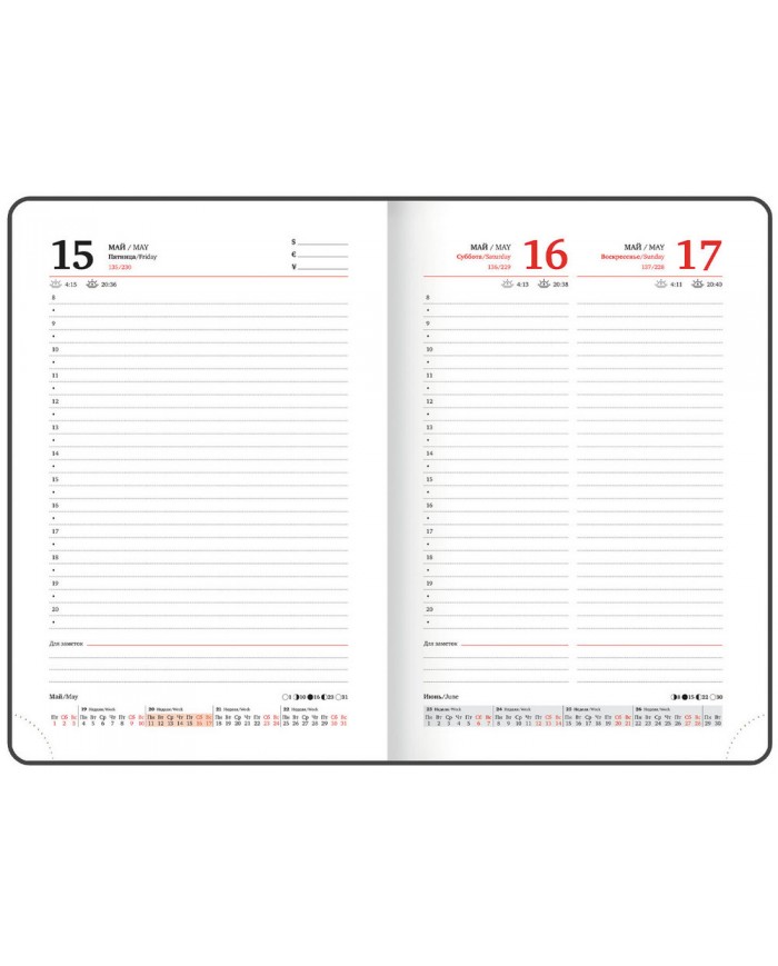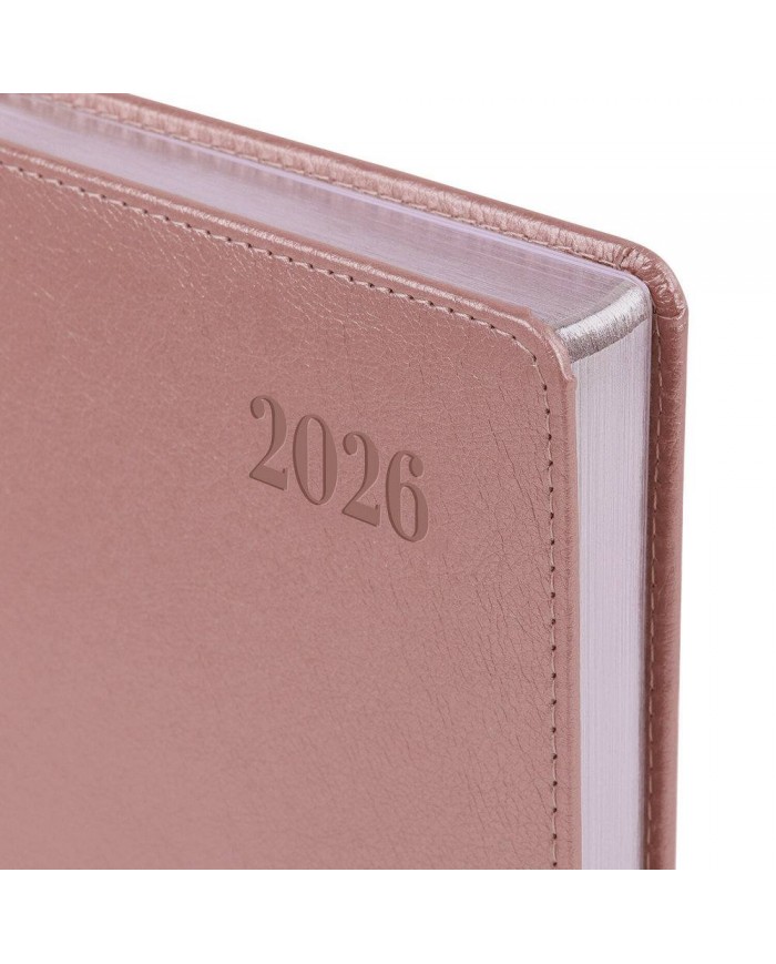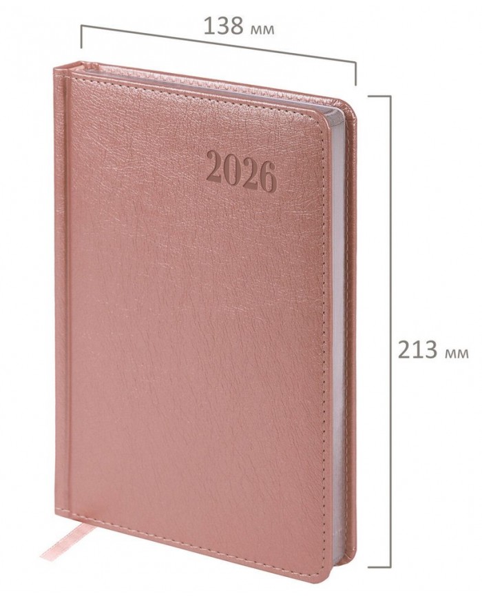 Внутренний блок включает 168 листов белой бумаги плотностью 70 г/м2. Каждая страничка имеет перфорированный угол. Благодаря стандартному формату А5 (138х213 мм) ежедневник удобно использовать как в офисе, так и на выездных деловых встречах. Твердая обложка стилизована под гладкую кожу розового цвета. Материал обложки подходит для горячего тиснения. Серебряный срез придает ежедневнику особый шарм. Дополнением является закладка-ляссе, с помощью которой при необходимости можно быстро открыть ежедневник на нужной странице. Справочный материал дополнительно расширяет функциональность ежедневника. В конце внутреннего блока есть 4 страницы для записей и заметок. Идеально подойдет для офисных работников и людей, занимающихся бизнесом.