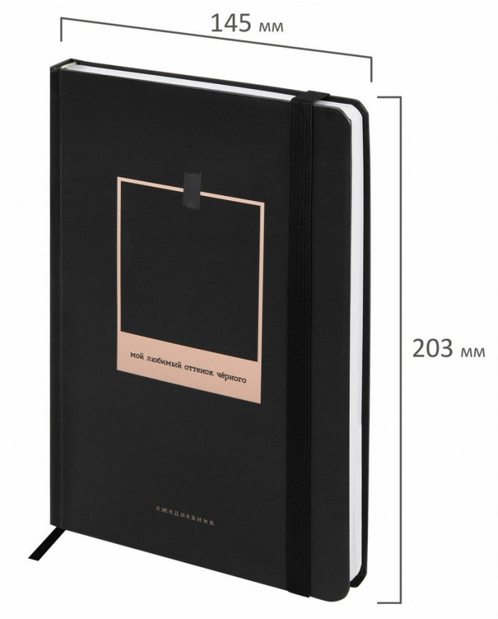 Ежедневник недатированный с резинкой А5 145х203 мм, BRAUBERG, твердый, 128 л., "Black",