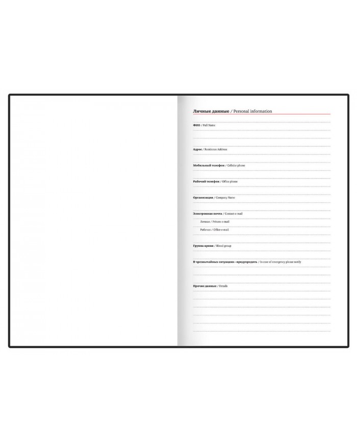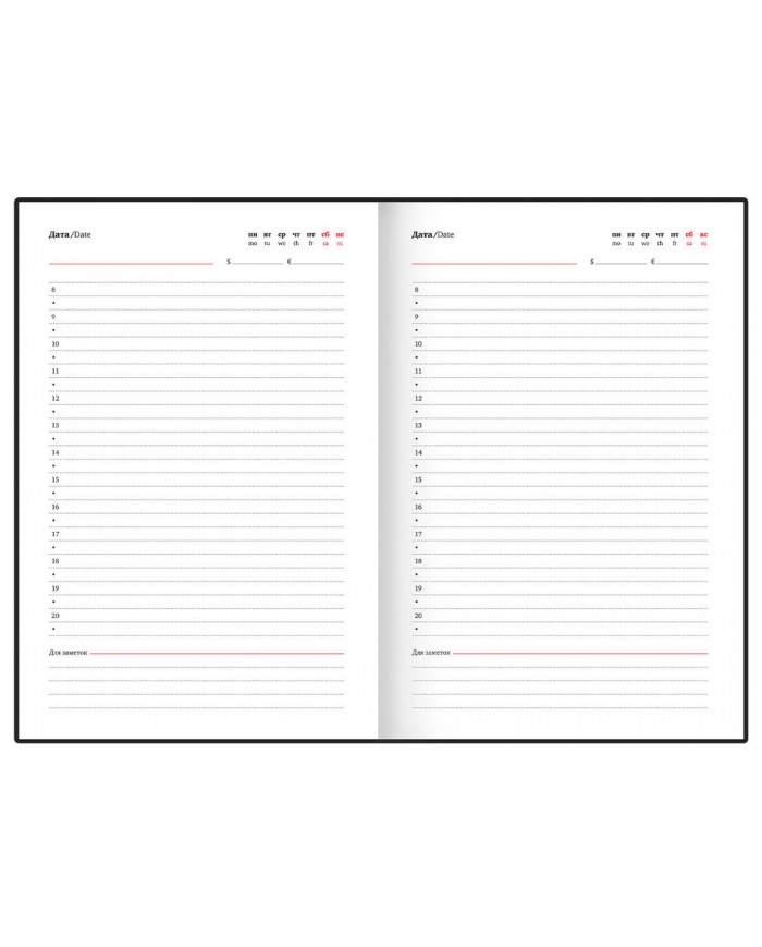 Внутренний блок содержит 128 листов офсетной бумаги плотностью 60 г/м2. Обложка 7БЦ (твердый переплет с матовой пленкой) обеспечивает долгий срок службы. Снабжен резинкой-фиксатором, благодаря чему ежедневник не откроется в сумке или портфеле. Отличительная особенность – это поля, на которых можно проставить даты. Они не пропечатаны, поэтому владелец может отводить на каждый день сколько угодно листов и записывать все важные сведения. В конце ежедневника имеются 4 страницы для записей и заметок.