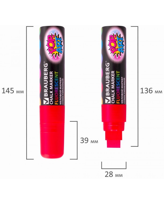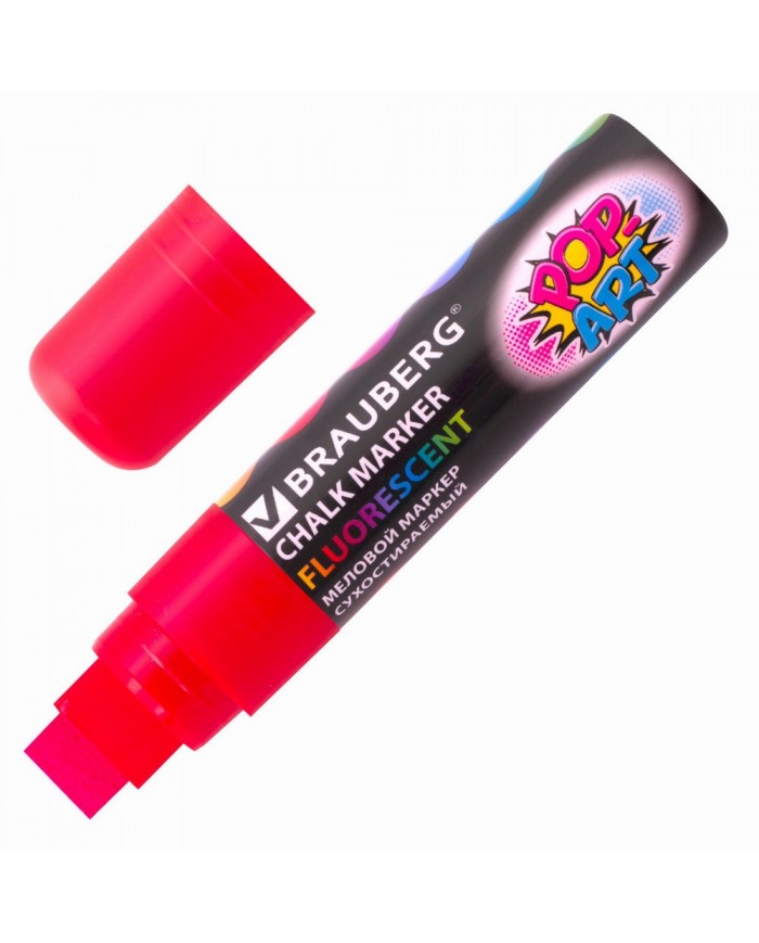 Маркер меловой "POP-ART" КРАСНЫЙ, 15 мм, стираемый, для гладких поверхностей, BRAUBERG,