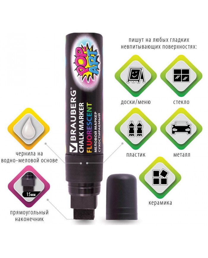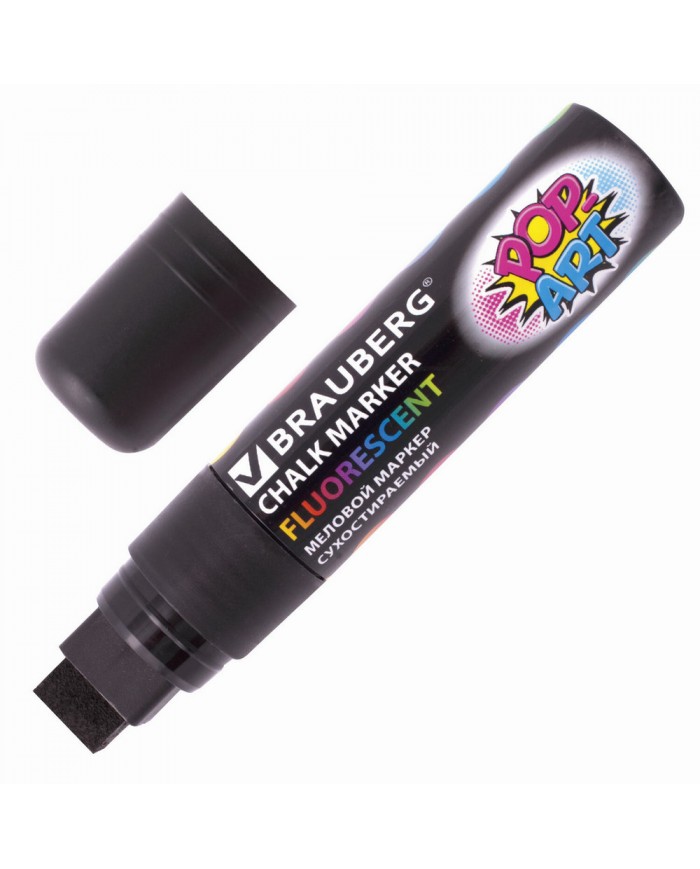 Маркер меловой "POP-ART" ЧЕРНЫЙ, 15 мм, стираемый, для гладких поверхностей, BRAUBERG,