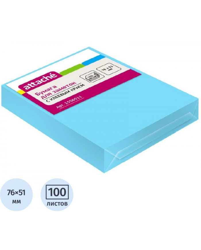 Стикеры Attache в формате 76x51 мм, голубого цвета, 100 листов. Хорошо подойдут для сотрудников творческих профессий и руководителей: рекомендуются для использования в процессе совещаний, обучения, мозговых штурмов. Тон стикеров - неоновый. Плотность бумаги: 70-72 г/кв.м. клейкий слой - 15 Н/м. Длина клейкой стороны 51 мм. После удаления бумаги на поверхности не остается следов клеевого состава, лист можно крепить повторно. Особых условий хранения не требует, сертификации не подлежит, срок годности не ограничен.Чтобы увеличить срок службы стикеров, пожалуйста, следуйте рекомендациям:1) Отделять стикер от блока следует вдоль клеевой полосы. Так можно избежать скручивания и последующего отклеивания стикера.2) Прежде чем наклеивать стикер, убедитесь в отсутствии грязи и пыли на поверхности. На чистой поверхности срок службы клеевого слоя более продолжителен.Законодательные и технические документы: