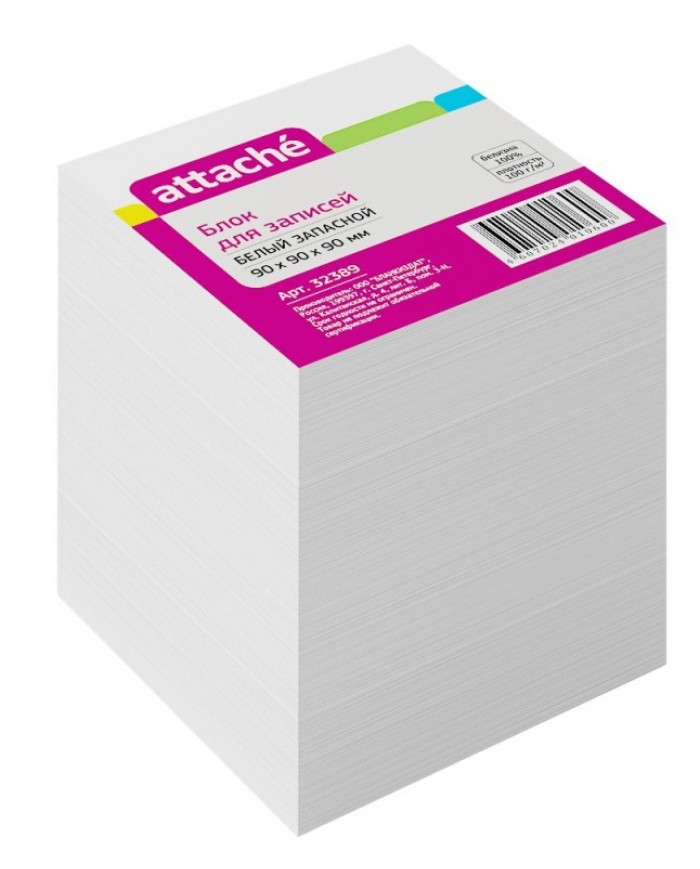 Блок для записей Attache предназначен для работы в офисе или дома. Будет полезен в использовании для рабочих процессов и повседневных задач, а также при проведении совещаний, обучений, мозговых штурмов. Идеально подходит для работников офиса. Блок высотой 9 см сложен из квадратных листов размером 9x9 см. Листы не склеены между собой. Листы изготовлены из высококачественной белой офсетной бумаги плотностью 80 г/кв.м. и белизной 92%. Блок для записей подходит для письма любыми типами ручек и карандашей. Благодаря высокой плотности листы не продавливаются при нажатии. Поставляется в термоусадочной пленке, защищающей блок при транспортировке. Для повышения удобства рекомендуется использование в пластиковых подставках и настольных органайзерах. В блоке 530+/-5 листов. Законодательные и технические документы: