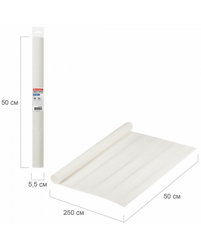 Благодаря своей высокой плотности 32 г/м2 и удлинению при натяжении на 45% крепированная бумага позволяет создавать объемные композиции, которые надолго сохранят задуманную форму. Размер рулона — 50х250 см, цвет - белый. Крепированная бумага BRAUBERG открывает широкие горизонты для творчества детей и взрослых. Она сделает творческий процесс еще более увлекательным, а также вдохновит на создание необычных поделок, которые способны стать оригинальным дополнением в дизайне интерьера.
