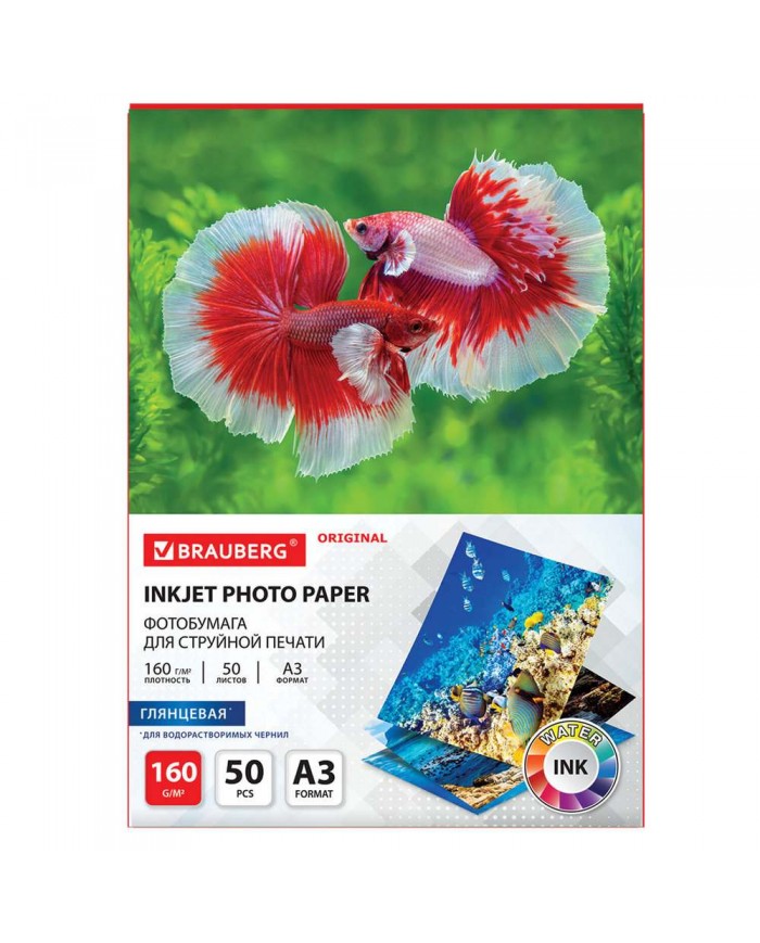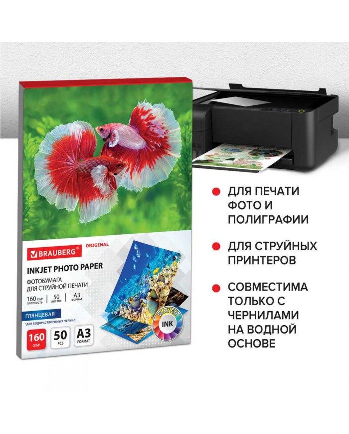 Фотобумага глянцевая БОЛЬШОГО ФОРМАТА, А3, 160 г/м2, односторонняя, 50 листов, BRAUBERG ORGINAL, 363