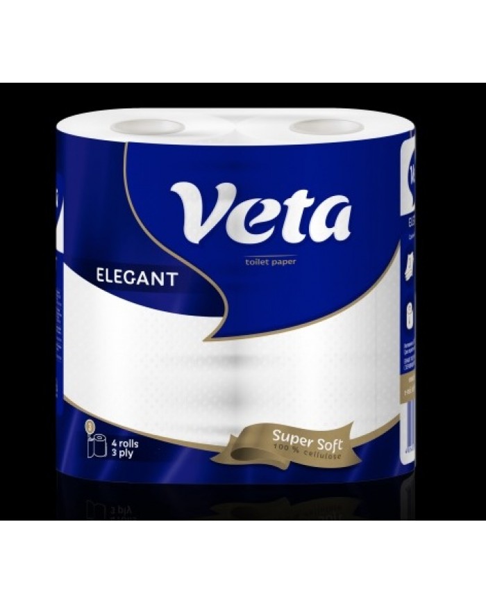 Бумага туалетная "VETA ELEGANT", 3-слойная, на втулке, 100% целлюлоза, 4 рул в уп.