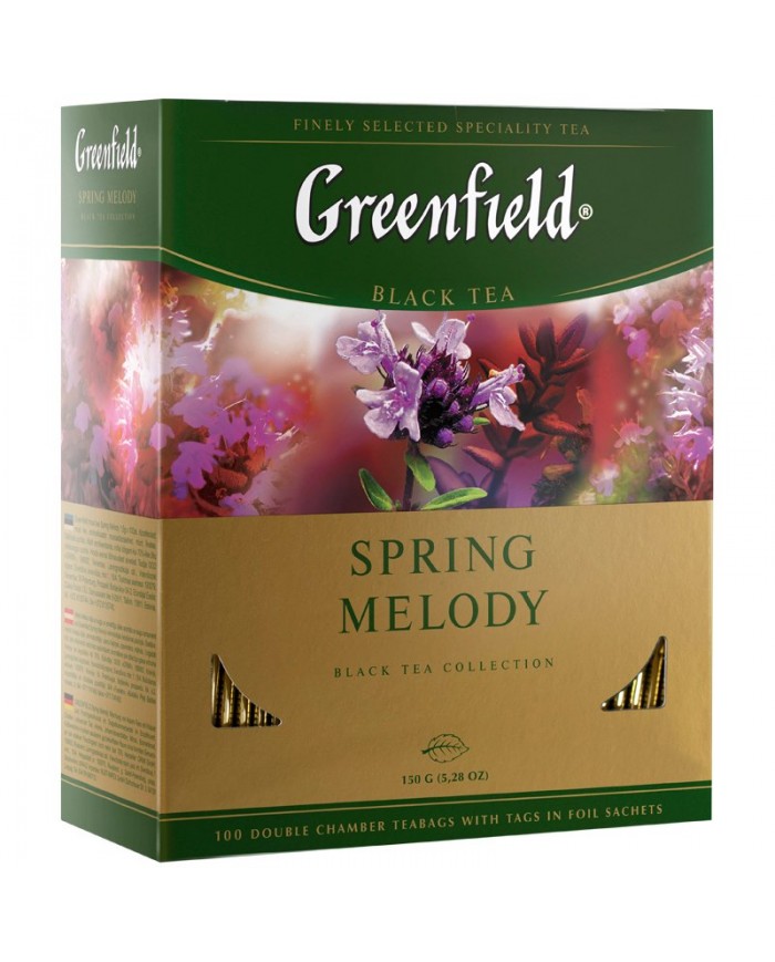 Чай Greenfield "Spring Melody", черный, с ароматом мяты, чабреца, 100 фольг. пакетиков по 1,5г