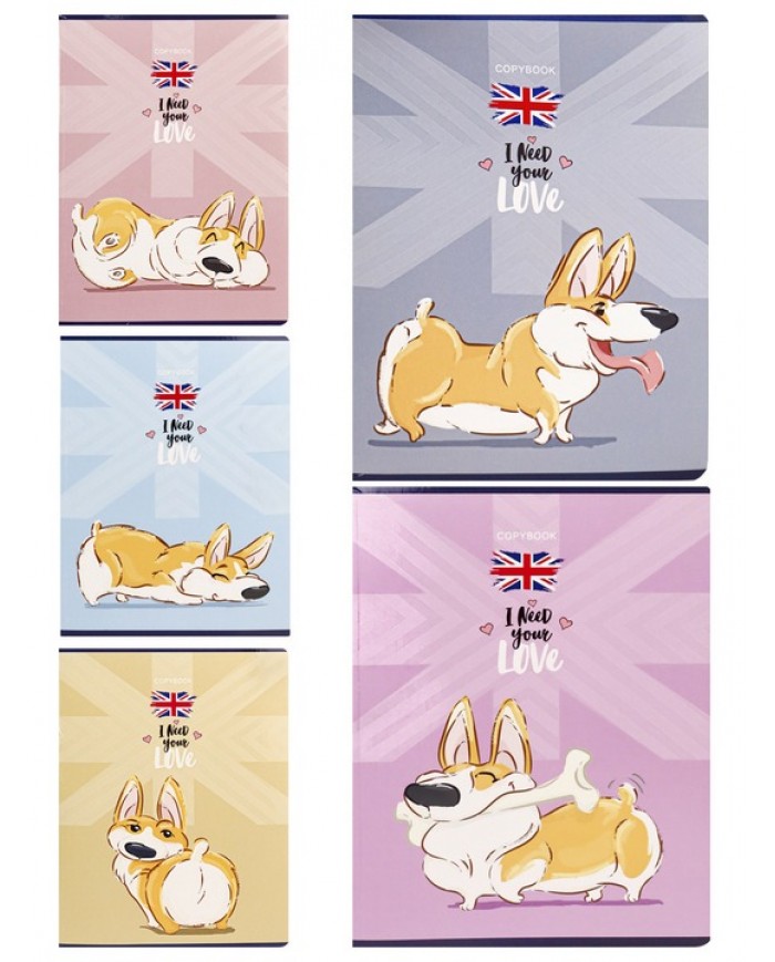 Тетрадь 96 л А5 клетка МИЛЫЕ КОРГИ (цвет.мелов.обложка.)5 диз, твин лак