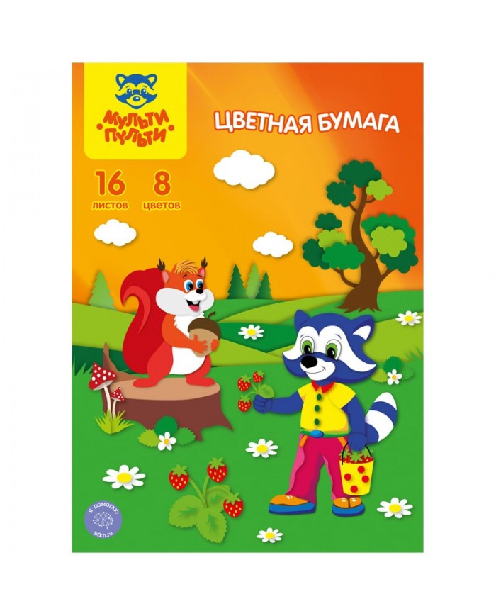 Цветная бумага A4, Мульти-Пульти, 16л., 8цв., в папке
