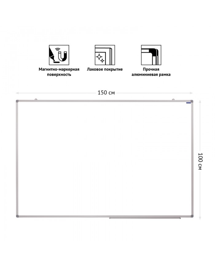 Магнитно-маркерная доска идеально подойдет для проведения тренингов, совещаний и презентаций. Белое лаковое покрытие предназначено для письма специальными маркерами для белой доски. Металлическая поверхность также позволяет размещать объявления при помощи магнитов. Алюминиевая рамка с укрепленными пластиковыми уголками гарантирует прочность конструкции и длительный срок службы. Предусмотрена возможность как горизонтального, так и вертикального монтажа доски на поверхности. Комплектация - полочка для аксессуаров, крепежные элементы, инструкция.