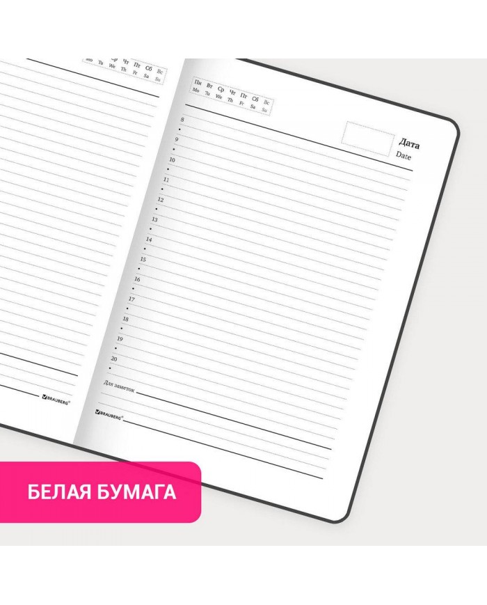 Внутренний блок содержит 128 листов офсетной бумаги плотностью 65 г/м2. Обложка 7БЦ (твердый переплет с матовой пленкой) обеспечивает долгий срок службы. Снабжен резинкой-фиксатором, благодаря чему ежедневник не откроется в сумке или портфеле. Отличительная особенность - это поля, где можно проставить даты. Они не пропечатаны, поэтому владелец может отводить на каждый день сколько угодно листов и записывать все важные сведения.