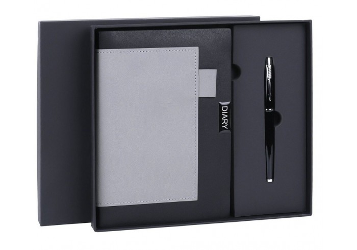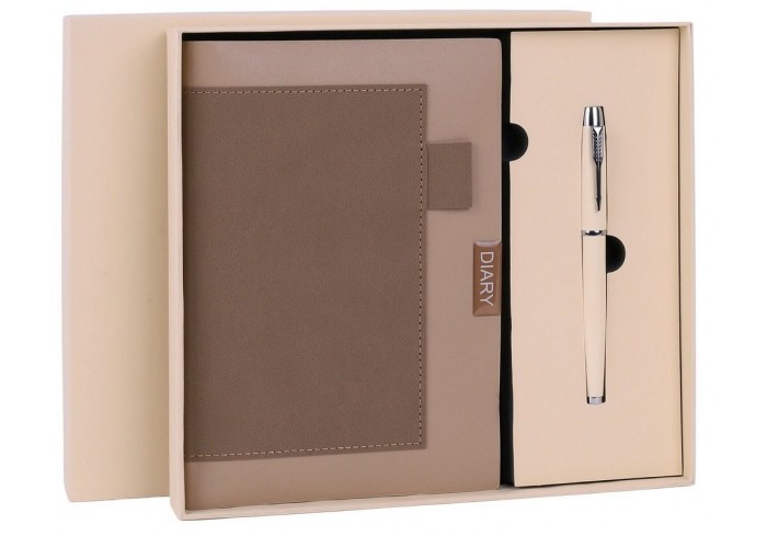 Подарочный набор включает в себя недатированный ежедневник с внутренним блоком из 160 листов кремовой бумаги плотностью 70 г/м2. Каждая страничка имее..