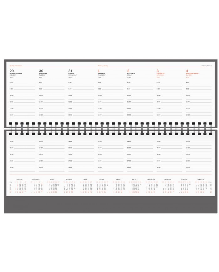 Внутренний блок включает 64 листа кремовой бумаги плотностью 70 г/м2. Благодаря большому формату А4 еженедельник удобно использовать как в офисе, так ..
