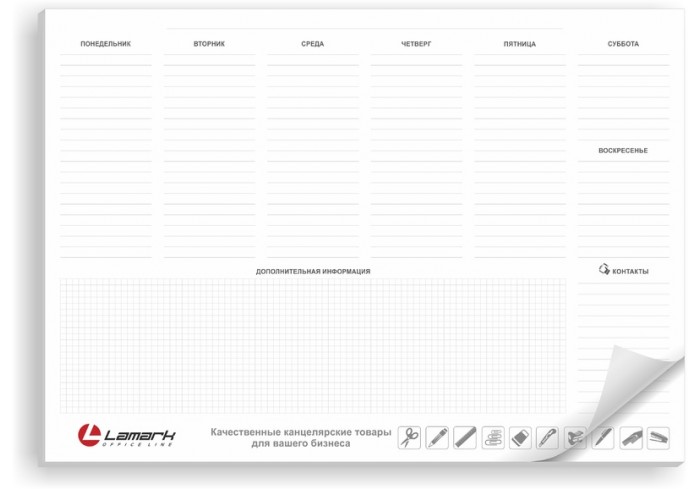 Планинг настольный Lamark А3 формата на 25 листов, недатированный выполнен из офсета плотностью 80 г/м2. Поставляется в индивидуальном РР пакете с л..