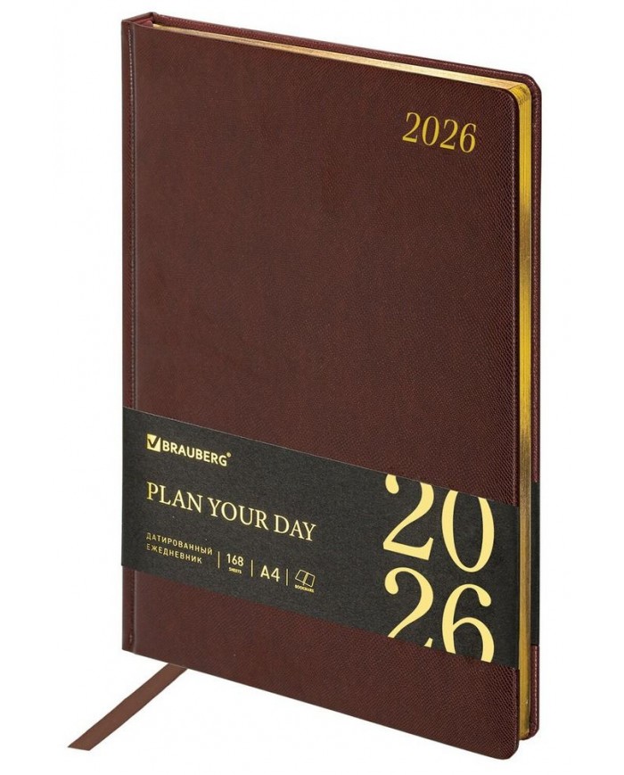 Ежедневник датиров. 2026 БОЛЬШОЙ ФОРМАТ 210х297 мм, А4, BRAUBERG "Iguana", под кожу, коричневый,168л