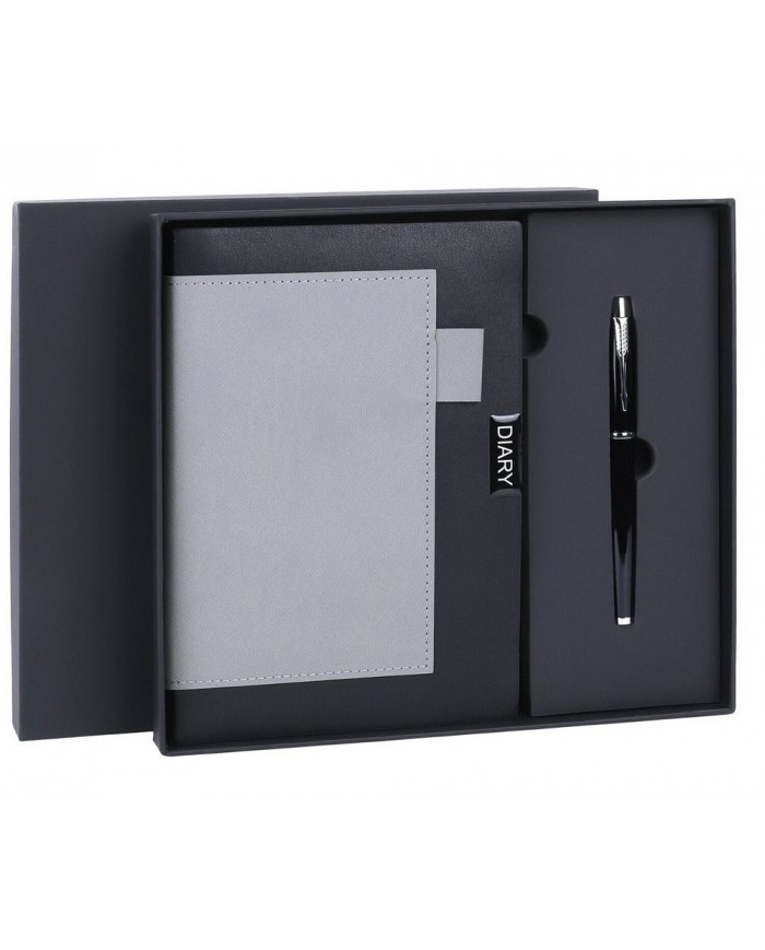 Подарочный набор включает в себя недатированный ежедневник с внутренним блоком из 160 листов кремовой бумаги плотностью 70 г/м2. Каждая страничка имеет перфорированный угол. Благодаря классическому формату А5 (144x210 мм) ежедневник удобно использовать как в офисе, так и на выездных деловых встречах. Гибкая обложка стилизована под текстурную кожу. Дополнениями являются закладка-ляссе и держатель для ручки. Ручка, со стильным корпусом в тон ежедневника и высококачественными чернилами, также входит в набор. Набор упакован в плотную подарочную картонную коробку. Все элементы набора выполнены в одном цвете.