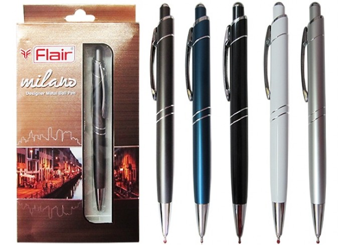 Ручка шариковая автоматическая Flair MILANO, с синими чернилами на масляной основе. Металлический корпус, хромированные детали. Стержень INK TANK (VEL..
