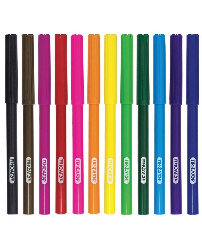 Обладают яркими цветами в количестве 12 штук. Имеют удобную круглую форму корпуса, длина которого 145 мм, а диаметр - 8 мм. Благодаря толщине линии пи..