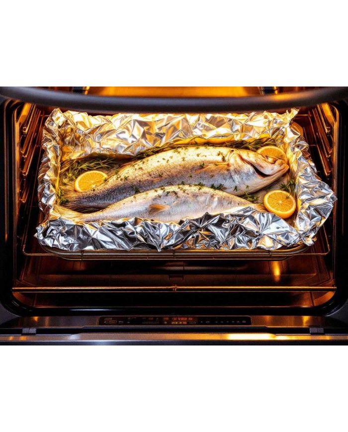 Фольга препятствует проникновению посторонних запахов и солнечного света, надёжно сохраняя свежесть и вкус продуктов. Благодаря жаропрочным свойствам и достаточной толщине она идеально подходит для приготовления пищи в духовке, на гриле и углях (без прямого контакта с огнём). Продукты сохраняют натуральный вкус, не пригорают и не прилипают. Размер рулона: 29 см х 10 м, толщина – 11 микрон.