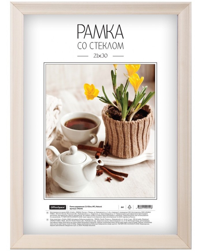Рамка деревянная 21*30см, OfficeSpace, №2, Natural