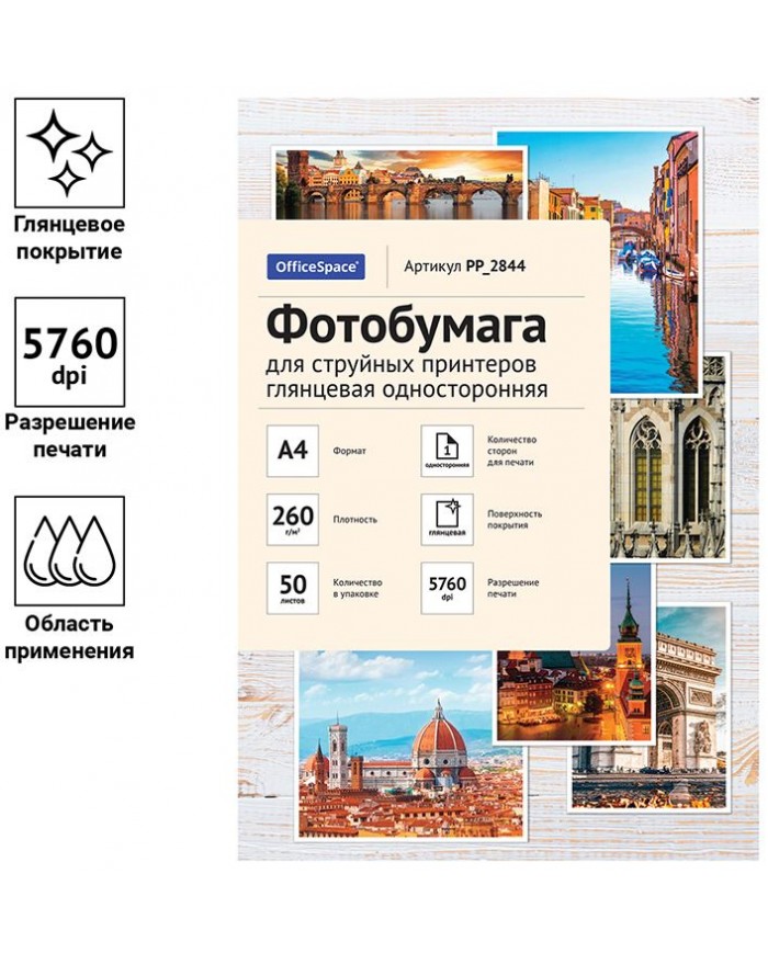 Имеет формат А4 и плотность 260 г/м2, что исключает просвечивание изображения. Гладкая поверхность обеспечивает превосходное качество, а особый состав..