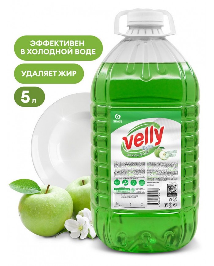 Средство для мытья посуды "Velly" light (зеленое яблоко) 5кг. Grass