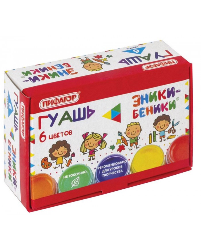 Гуашь ПИФАГОР ЭНИКИ-БЕНИКИ", 6 цветов по 10 мл