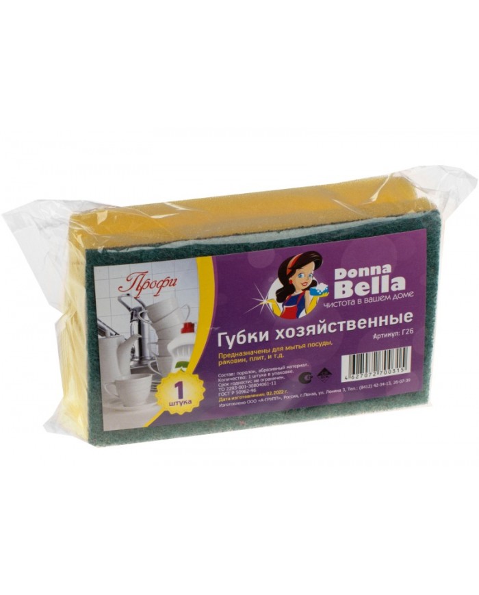 Губка хозяйственная Профи(1шт/уп) Donna-Bella поролон 14x8,5х4,5см с абразивным слоем.