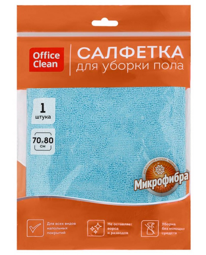 Салфетка (тряпка) для мытья пола OfficeClean "Премиум", голубая, микрофибра,70*80см, плотность 220г