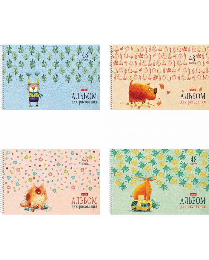 Альбом для рисования А4 48 л., спираль, обложка картон, HATBER, 205х290 мм, "Счастливчики" (4 вида),